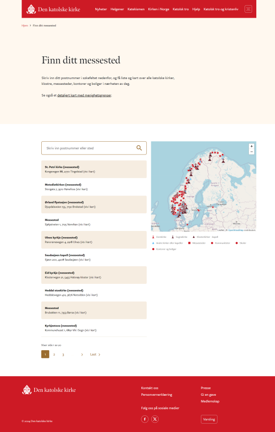 Kirkekart for å hjelpe katolikker med å finne nærmeste kirke.